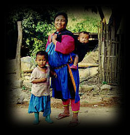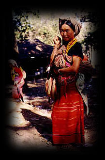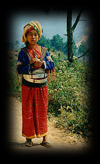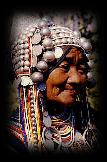 Villages of these colorful people are to be found in the mountains of China, Laos Myanmar (Burma) and northern Thailand. Every Akha village is distinguished by their carved wooden gates, presided over by guardian spirits. They live on marginal land and find it difficult to eke out a living through their slash and burn method of agriculture. In order to supplement their income, many Akha are now selling handicrafts, employing the traditional skills used in making their own clothing and cultural items. ![]() |